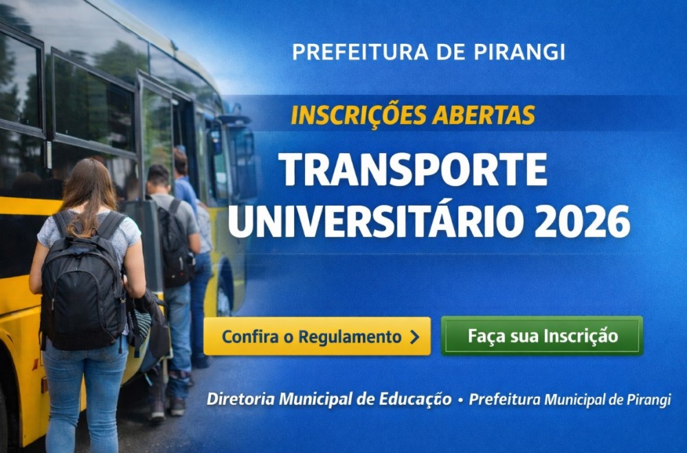 13/01/2026 - Prefeitura de Pirangi abre inscrições para o Transporte Universitário 2026.